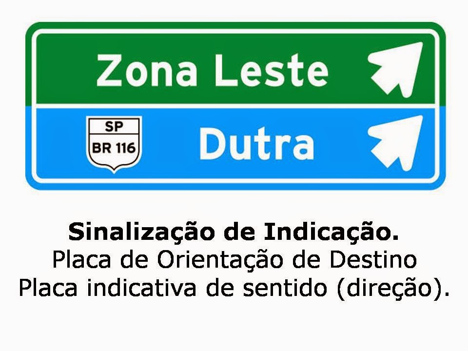 As Placas de Orientação de Destino indicam ao condutor a direção que o mesmo deve seguir para atingir determinados lugares, orientando seu percurso e/ou distâncias.